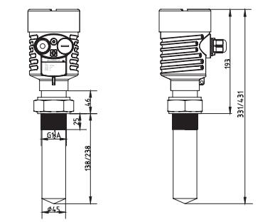 2. SKD55棒式防腐雷達物位計外型尺寸圖