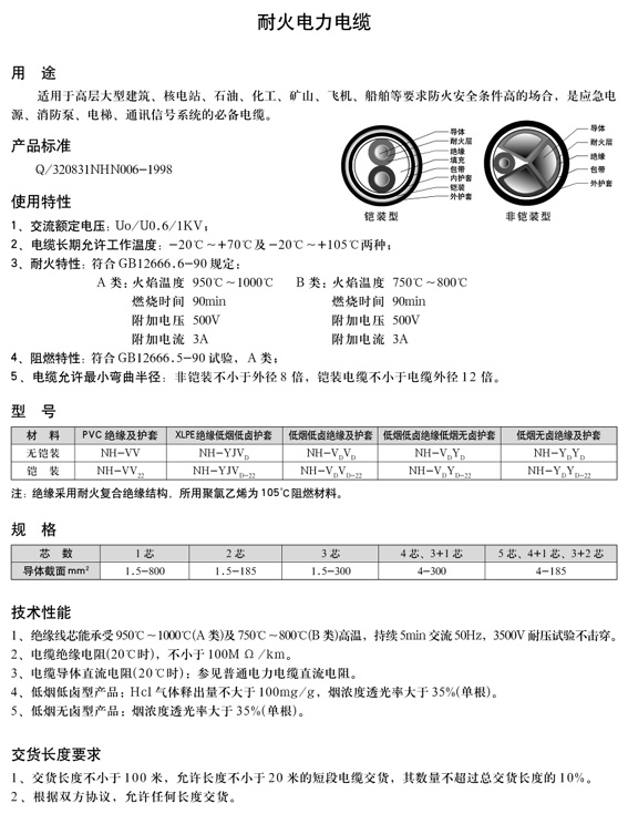 耐火電力電纜