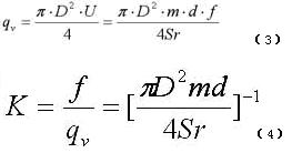 式中,m為旋渦發(fā)生體兩側(cè)弓形面積與管道橫截面面積之比;D為表體通徑;d為旋渦發(fā)生體迎面寬度;f為旋渦的發(fā)生頻率;U1為旋渦發(fā)生體兩側(cè)平均流速;Sr為斯特勞哈爾數(shù);U為被測介質(zhì)流的平均速度。