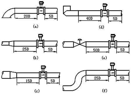 渦街流量計屬于對管道流速分布畸變、旋轉(zhuǎn)流和流動脈動等敏感的流量計,因此,對現(xiàn)場管道安裝條件應充分重視,嚴格遵照使用說明書執(zhí)行。