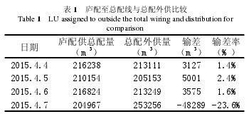 1)孔板裝反引起測(cè)量誤差。在孔板閥中安裝孔板時(shí),應(yīng)保證孔板的安裝方向正確,天然氣從孔板的上端面流向下端面。表3為廬配供總配氣量與總配外供氣量的對(duì)比,正常情況下廬配供總配氣量應(yīng)大于總配外供氣量,如表2中4.4日至4.6日數(shù)據(jù)。4.6日廬配至總配線孔板裝反,導(dǎo)致4.7日廬配供總配氣量小于總配外供氣量,引起較大誤差。