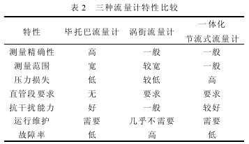2流量計(jì)選型與分析 根據(jù)項(xiàng)目輸送蒸汽的性質(zhì)和工藝操作參數(shù),以及蒸汽計(jì)量廣泛選擇的流量計(jì)型號(hào),初步確定可以選擇的流量計(jì)有畢托巴流量計(jì)、渦街流量計(jì)和一體化節(jié)流式流量計(jì),以下對三種流量計(jì)的原理及特點(diǎn)做以分析比較。 2.1畢托巴流量計(jì) 畢托巴流量計(jì)是采用皮托管原理提取管道中心流體流速(全壓-靜壓=動(dòng)壓)再換算成流體體積流量與質(zhì)量流量的差壓式流量計(jì)。皮托管原理早就廣泛應(yīng)用在航天航空業(yè)中。 2.1.1組成和工作原理 畢托巴流量計(jì)將探針插入管道中心,總壓孔對正流體的來流方向,靜壓孔對正流體的去流方向,總壓與靜壓之差即為管道中心的實(shí)測差壓,再由該探針的風(fēng)洞標(biāo)定曲線擬合出該點(diǎn)的標(biāo)準(zhǔn)差壓,根據(jù)標(biāo)準(zhǔn)差壓來計(jì)算流體的流量。同時(shí)還需用壓力變送器測出流體壓力,用熱電阻溫度計(jì)測出流體溫度,把標(biāo)準(zhǔn)差壓信號(hào)、壓力信號(hào)、溫度信號(hào)同時(shí)引入單片機(jī)構(gòu)成的流量積算儀或直接接入DCS系統(tǒng),一方面對探針的流量方程進(jìn)行解算,再一方面對蒸汽進(jìn)行壓力、溫度補(bǔ)償,以保證測量精度,并用數(shù)字顯示出差壓、壓力、溫度、瞬時(shí)流量、累積流量、熱量、速度等參數(shù)。 2.1.2畢托巴流量計(jì)的優(yōu)點(diǎn) ①準(zhǔn)確度高。蒸汽測量最高可達(dá)0.5級(jí); ②可靠性高。因探針的構(gòu)造非常簡單,結(jié)構(gòu)設(shè)計(jì)合理,導(dǎo)壓管內(nèi)介質(zhì)不流動(dòng),雜物不容易進(jìn)去,所以能長時(shí)間保持測量精度; ③測量范圍廣。流量在0.2~50000t/h都可以準(zhǔn)確測量。對低流速、小流量、大管徑測量效果、佳; ④安裝簡便。只需在管道合適的位置上打一個(gè)相當(dāng)?shù)目祝岩淮卧结槻迦牍艿乐行,即可方便地進(jìn)行安裝; ⑤壓力損失小,一次元件傳感器是Φ20mm~Φ55mm不銹鋼制成,其截面積很小,在介質(zhì)管道中幾乎是無壓力損失,與孔板等節(jié)流裝置相比較具有明顯的節(jié)能效果;⑥現(xiàn)場安裝不要求直管段。 2.1.3畢托巴流量計(jì)的缺點(diǎn) ①價(jià)格高,性價(jià)比低;②引壓管沒有不積冷凝水設(shè)置和防凍設(shè)置。 2.2渦街流量計(jì) 2.2.1組成和工作原理 渦街流量計(jì)屬于體積流量計(jì)。渦街流量計(jì)是應(yīng)用流體振蕩原理來測量流量的,流體在管道中經(jīng)過旋渦發(fā)生體后會(huì)產(chǎn)生正比于流速的旋渦,由此可算出流體的流量。流量與旋渦頻率的關(guān)系,可用下式表示[1]:V=f/k 式中:f為旋渦的個(gè)數(shù);k為儀表系數(shù);V為流過流體的體積。 2.2.2渦街流量計(jì)用于蒸汽計(jì)量的主要優(yōu)點(diǎn) ①結(jié)構(gòu)簡單而牢固無可動(dòng)部件,可靠性高,長期運(yùn)行十分可靠; ②安裝簡單,維修十分方便; ③輸出是與流量成正比的脈沖信號(hào),無零點(diǎn)漂移,精度高; ④壓力損失較小,運(yùn)行費(fèi)用低,節(jié)能; ⑤測量范圍寬,量程比可達(dá)1∶10; ⑥應(yīng)用范圍廣,蒸汽、氣體、液體的流量均可測量。 2.2.3渦街流量計(jì)用于蒸汽計(jì)量的缺點(diǎn) ①要求被測量介質(zhì)的流動(dòng)雷諾數(shù)下限較高,體流速一般應(yīng)大于4m/s,流速過低時(shí)會(huì)造成測量精度降低甚至小流量不計(jì)量;②對振動(dòng)較敏感,在強(qiáng)烈振動(dòng)的環(huán)境下工作,會(huì)影響測量精度;③對被測量介質(zhì)的潔凈度要求較高,不適宜測量對頻率信號(hào)檢測器造成嚴(yán)重污染的臟污流體。 2.3一體化節(jié)流式流量計(jì) 2.3.1一體化節(jié)流式流量計(jì)結(jié)構(gòu)和工作原理 一體化節(jié)流式流量計(jì)結(jié)構(gòu),如圖1所示。 一體化節(jié)流式流量計(jì)是將節(jié)流裝置和差壓變送器做成一體,由差壓變送器輸出4~20mA差壓信號(hào),可測量多種介質(zhì)(液體、氣體、蒸汽),設(shè)計(jì)了防凍式隔離器,簡化了流量計(jì)結(jié)構(gòu),便于安裝。一體化節(jié)流式流量計(jì)可采用多種節(jié)流件,常用ISA1932標(biāo)準(zhǔn)噴嘴及標(biāo)準(zhǔn)孔板。 配置智能化差壓變送器和帶通訊功能的流量顯示設(shè)備的一體化節(jié)流式流量計(jì),可通過HART協(xié)議實(shí)現(xiàn)寬量程比檢測,流量測量范圍度可達(dá)到6∶1~10∶1或更寬。充滿管道的流體流經(jīng)管道內(nèi)的節(jié)流裝置,流束將在節(jié)流件處形成局部收縮,從而使流速增加,靜壓力降低,在節(jié)流件前后產(chǎn)生了靜壓力差(或差壓)。流體的流速愈大,在節(jié)流件前后產(chǎn)生的差壓也愈大。因此通過測量差壓的方法可測量流量[2]。 2.3.2一體化節(jié)流式流量計(jì)用于蒸汽計(jì)量的優(yōu)點(diǎn) ①測量范圍寬約為10∶1;②優(yōu)先選定值ISO1932噴嘴,壓損小(同流量,同β值情況下,為孔板的60%),檢定周期長(是孔板的4倍);③引壓管不積存冷凝水;④采用專利技術(shù)———防凍隔離器,不需伴熱、保溫和隔離器,節(jié)約能源;⑤介質(zhì)適用性強(qiáng)(特別適用于蒸汽流量測量),動(dòng)態(tài)性能好,結(jié)構(gòu)簡單,故障率低,安裝維護(hù)簡便。 2.3.3一體化節(jié)流式流量計(jì)用于蒸汽計(jì)量的缺點(diǎn) ①上下游直管段應(yīng)是圓形,內(nèi)壁光滑,