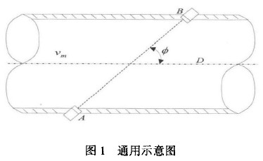 式中tdown為超聲波在流體中順流傳播的時(shí)間;tup為超聲波在流體中逆流傳播的時(shí)間;L為聲道長度;c?為聲波在流體中傳播的速度; νm心為流體的軸向平均流速;φ為聲道角.