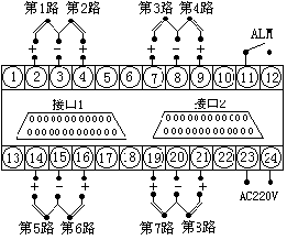 ⑵1-8通道分別獨(dú)立報警,繼電器輸出觸點(diǎn)容量 AC220V/1A