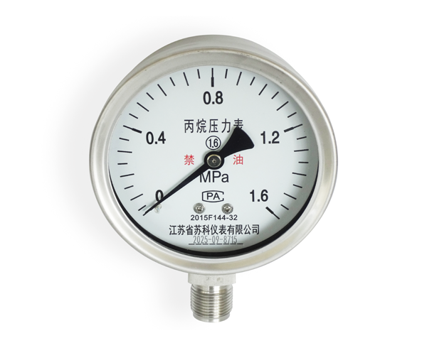丙烷壓力表適用于測(cè)量密閉容器或者管道內(nèi)丙烷氣體介質(zhì)的壓力的場(chǎng)合,丙烷壓力表由導(dǎo)壓系統(tǒng)、齒輪傳動(dòng)機(jī)構(gòu)、示數(shù)裝置、和外殼所組成。外殼為氣密性結(jié)構(gòu),能有效的保護(hù)內(nèi)部機(jī)件免受環(huán)境影響。